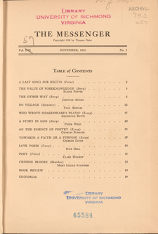 Home > UNIVERSITY-PUBLICATIONS > MESSENGER-RC > Vol. 57 > No. 1 (1930)