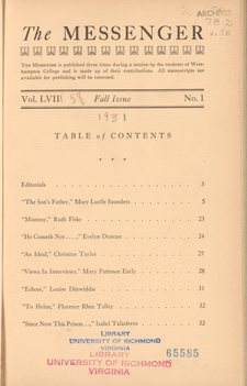 Home > UNIVERSITY-PUBLICATIONS > MESSENGER-RC > Vol. 58 > No. 1 (1931)